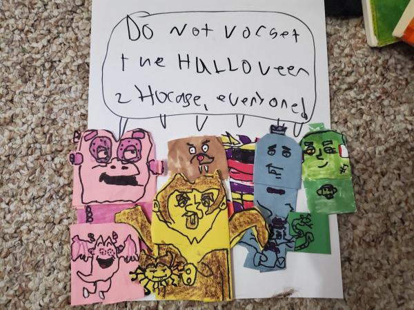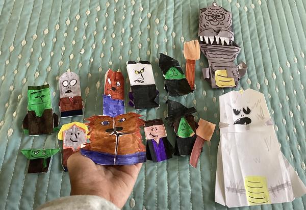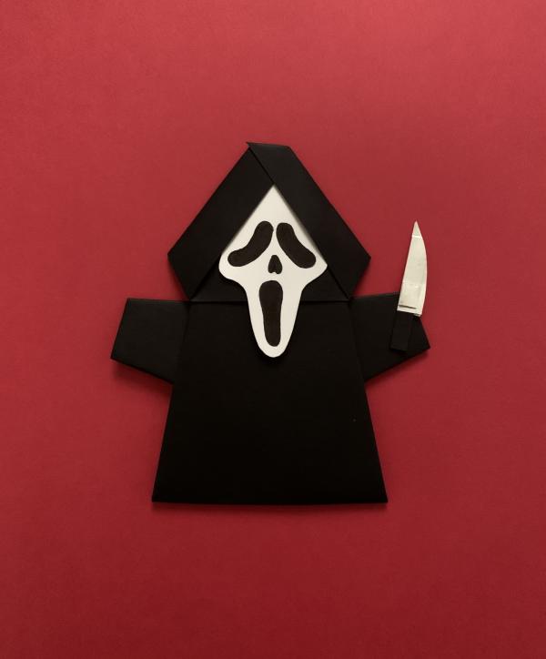 I made this Ghostface puppet using the Emperor Pickleteen design from the last OY book. The tin foil knife ended up being a great homage to the lightning on the cover of that volume! Ghostface is still one of my favorite Halloween characters, so I hope you like it!
