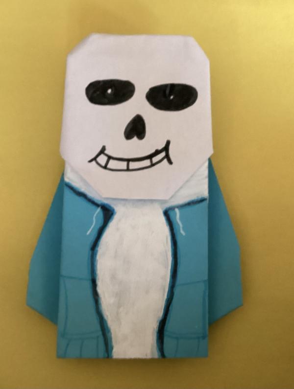 SOO uhh…. This is for the Halloween showcase, and this has to be my 2d best origami I have created (at least in my opinion), and he looks amazing, and I’d challenge you Tom to make an origami Sans Undertale, it doesn’t have to be perfect, but since you make like 300+ origami, this will be perfect (unless you’re already made a Sans origami a long time back, which you probably did.)