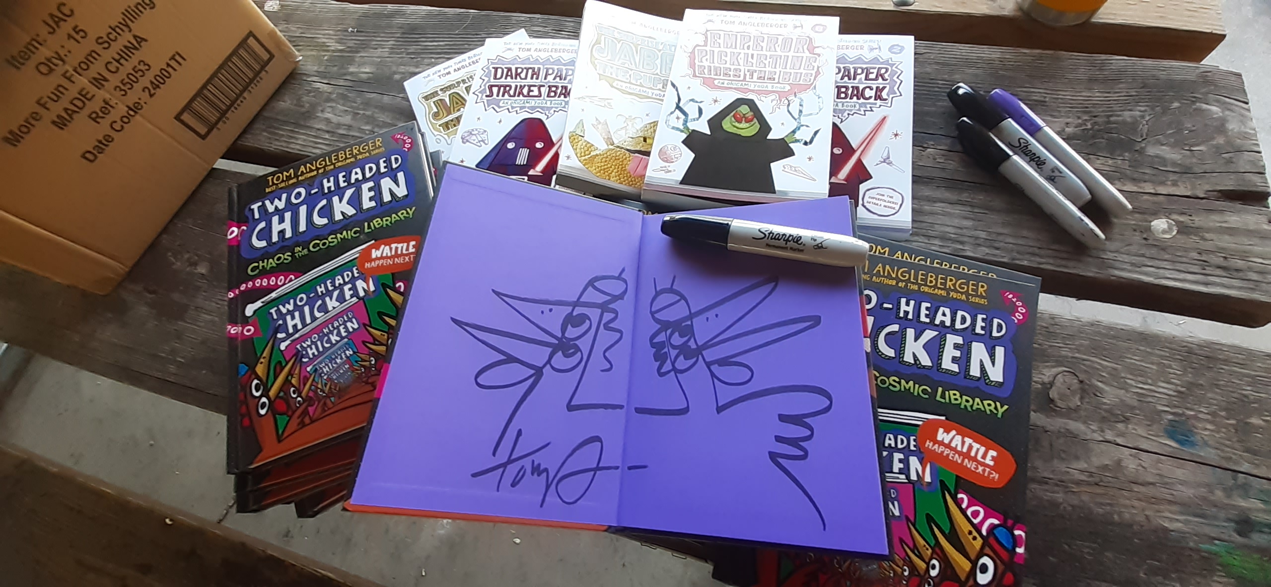 … ask Santa or your Great Aunt Wanda or anyone else to order them from Imaginations Toys in Blacksburg and they will come SIGNED and with a DOODLE by me!