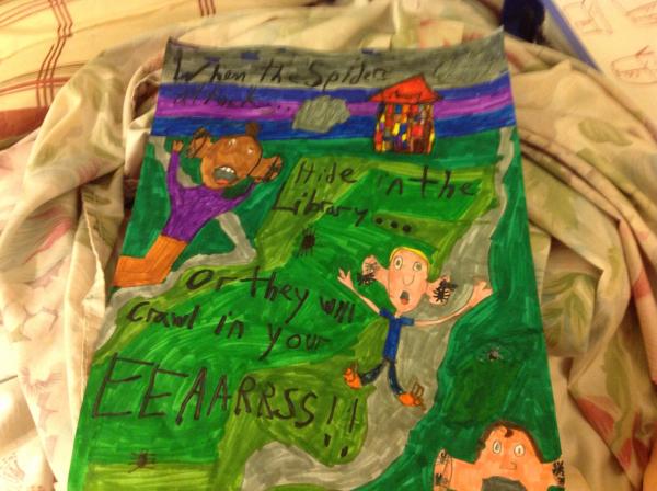 I made a copy of Dwight’s library poster with the spiders.