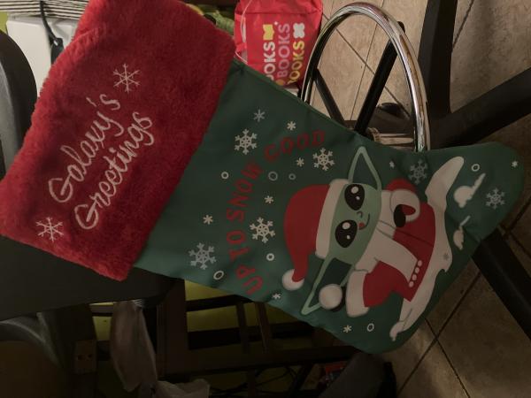 I put up my tiny Christmas tree and my yoda sock. Sam can you post this tomorrow?