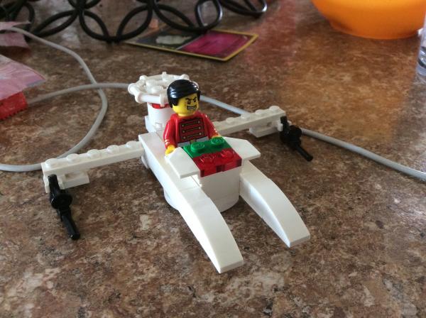 Hi everyone! This is a ship from my LEGO Intergalactic Base that I call Pandora. This is a Pandora Rapid Fire Space Speeder (Helmet needed). The controls in the front (the green and red buttons) control the ship. Hit the red one on the left or right side and it’ll start rapid firing on the left or right side. Hit the green buttons together to go forward, and hit the green buttons twice together to go backward. Hit the red buttons together to stop, and hit them twice together to go. Hit them three times together to continuously rapid fire from both sides. In the back is the engine with a camera on the back. That way you can send footage to the Pandora Space Base. Hope you like it!