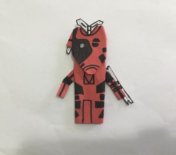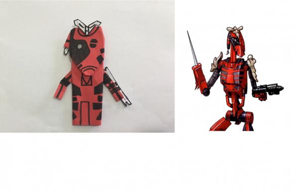 Kirigami Mr bones using my own battle droid base instrux (I will post them) In case you don’t know who Mr Bones is he was a heavily modified B1-series battle droid with a murderous personality. He was constructed by Temmin Wexley and built from components the boy scavenged from the catacombs beneath Myrra, the capital city of Akiva. Bones served as Temmin’s personal bodyguard in addition to being considered his friend and loyal companion.