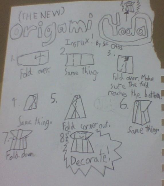 This isn’t the instrux for the last origami Yoda I made because I forgot how to make it. It’s different and easier. It has a robe AND a cloak. The actual thing will come out soon. Hope you like it!
