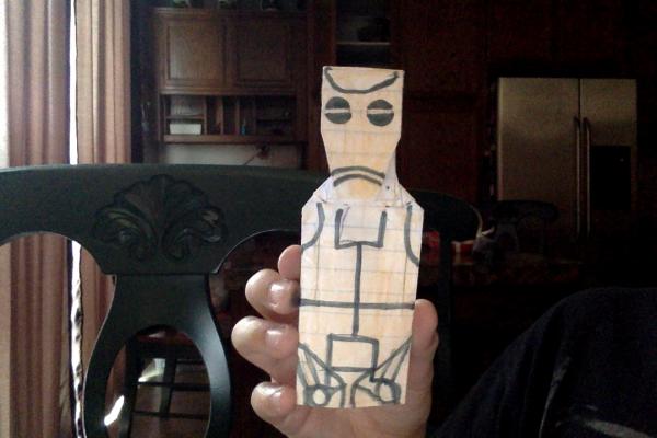 this battle droid is 100 percent origami. No cuts, no rips, and is one piece paper. I may post a video of who to make it.