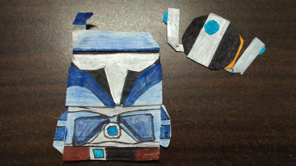 This is my custom ade Mandalorian and his personally made droid.