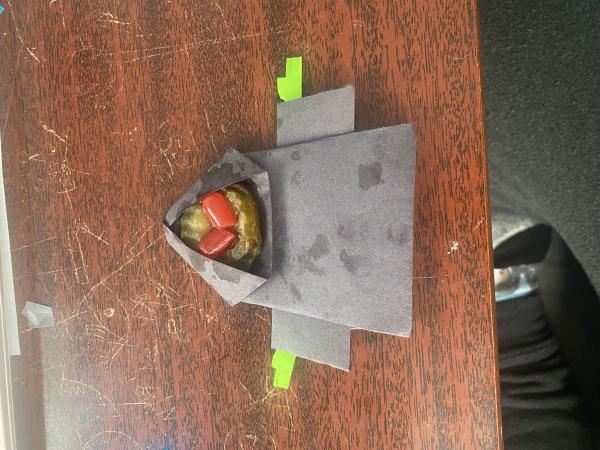SuperFolder CaptainMario_64 ive made an Emperor Pickletine before but just used green paper for the face, but this time I used a real pickle for the face and those gross Red Tamale candys for the eyes