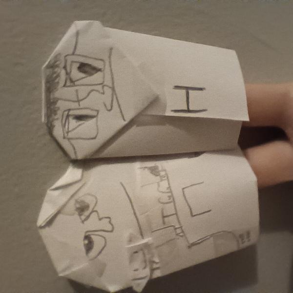 SuperFolder CountOrigamu Harvey turned out a bit weird but Dwight’s face looks just like how Kellen draws him! Dwight is a basic 3 fold puppet from art2d2 book with overalls taped on, while Harvey is a modified emergency yoda without ears and the chin folded back. Hopefully they both are […]