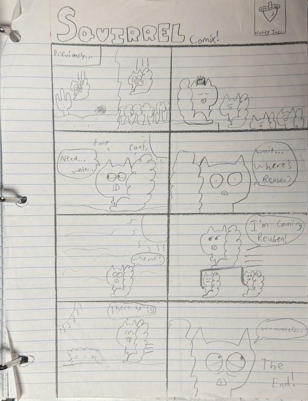 Reuben and Jack end up in 2 different places (for some reason). Reuben lands in a dry, unforgiving desert and has to survive. Meanwhile Jack falls into a lush forest where he is treated as a sort of “Squirrel King.” He eventually realizes his friend is missing and uses his newfound authority to rescue him. The end!!
