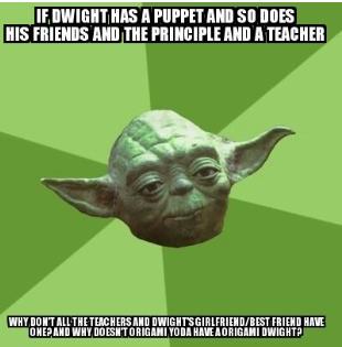 SQUIRREL: [stuffs origami yoda into its cheeks and runs off.