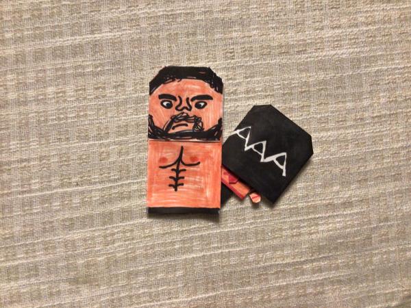 Ok so pic one is Finn Balor (with a AAA bag on his head) with Demonito on his hand