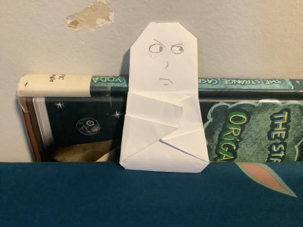 SuperFolder J12stooky Almost done, just have to let it dry and cut eye holes and then I can make a origami costume for my mom