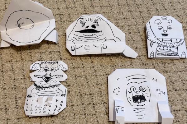 SuperFolder Rebo_Skywalker I made an origami Sarlacc Pit, Jamba the Hut, Bib Fortuna, Salacious B. Crumb, and Rancor. The Sarlacc Pit is a hand puppet.