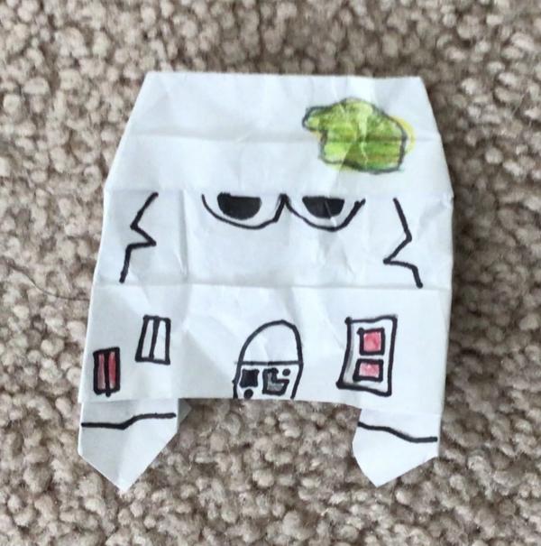 SuperFolder A13x0rigami Instrux here because they are hard to read (use regular paper cut into 4ths or use two colored papers, red and yellow, and put them together. you can’t use double sided you need two separate pieces.) Yellow side down 1. fold down 2. fold corners down 3. Tricky! […]