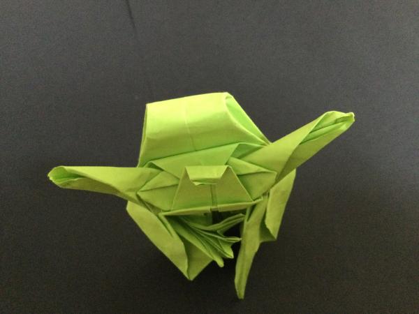 SuperFolder BlahBlahnumbers Instrux in YouTube! Isn’t this the origami in ‘about Tom?’ I don’t have a both side colored paper so it’s all green or white. Also got millennium falcon!