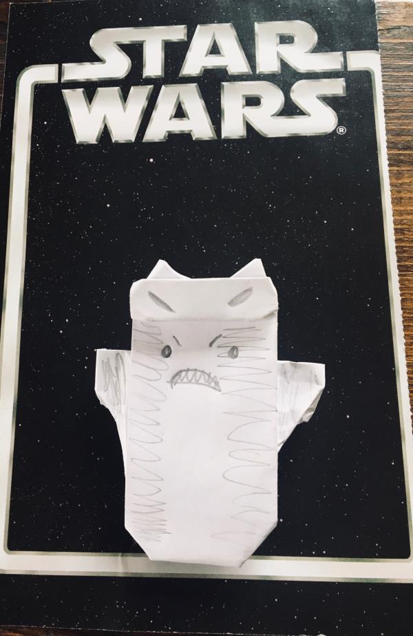 SuperFolder Koolkatkenzo This is how to fold baby origami Yoda from the Mandalorian. Here is a video I made that you can watch on how to make it. You have to draw on the eyes. https://youtu.be/oyTHrOsuGDQ