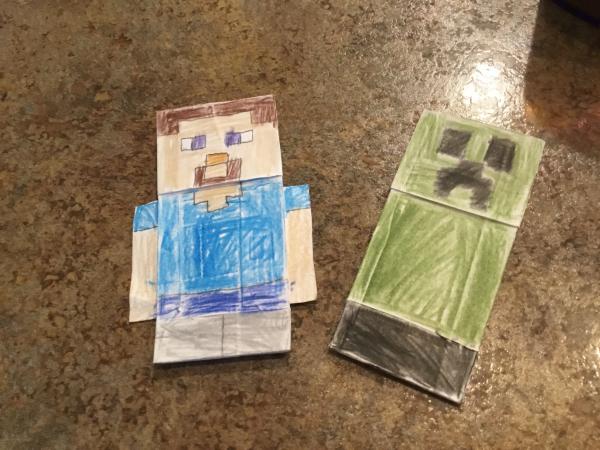 SuperFolder rgold43 I made a kirigami Steve and an origami creeper! They both use the same design, except I made a couple cuts for Steve’s arms. They can both be used as puppets. 10 “Instructions Please!” for instrux.