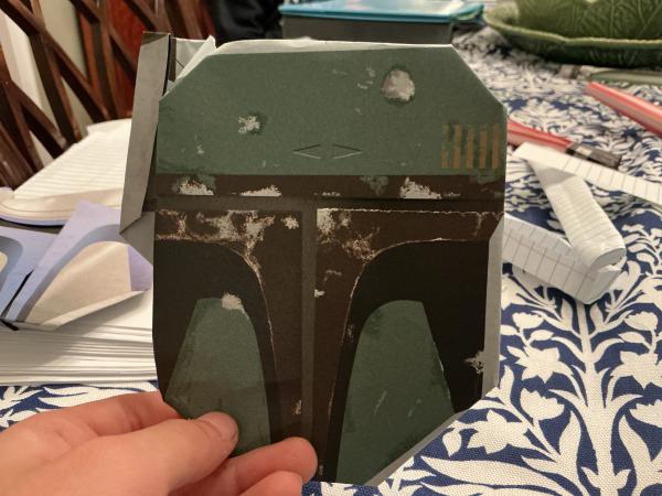 SuperFolder Crosby This is kirigami of the Mandalorian and Grogu. I love Origami Yoda, and I am a huge fan of the books. I am excited to be able to share my design with you. I am very proud of this design. Thank you for all you do!